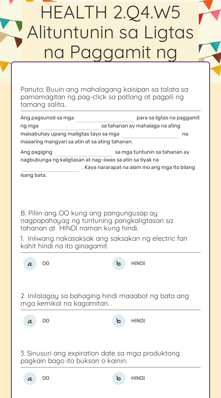 Health 2 Q4 W5 Alituntunin Sa Ligtas Na Paggamit Ng Kemikal Interactive Worksheet By Charlene Cabardo Wizer Me